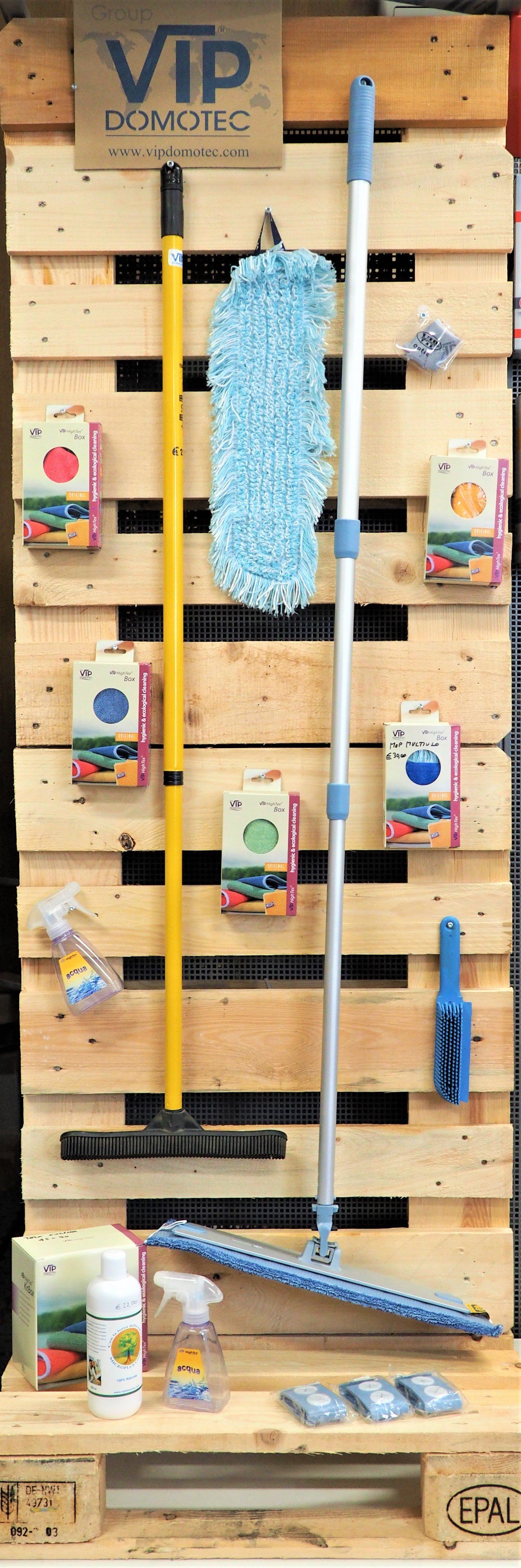 • Linea VIP DOMOTEC: kit panni e mop per la pulizia della casa con il solo utilizzo di acqua